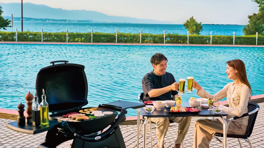 びわ湖畔に面した開放感あふれるロケーションでバーベキューやビールをお楽しみいただけます。