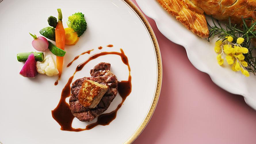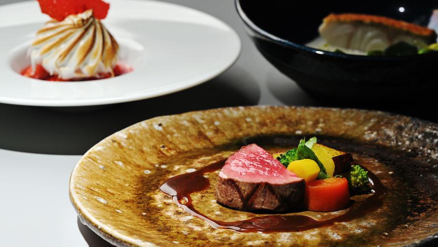 滋賀県の名産・近江牛。グリルヤードで香ばしく焼きあげた近江牛はオーブンで仕上げることにより、肉汁が溢れんばかりのよりしっとりとした仕上がりに。ホテル最上階で過ごす特別なディナータイムは、ホテルソムリエ厳選ワインとともにお楽しみください。