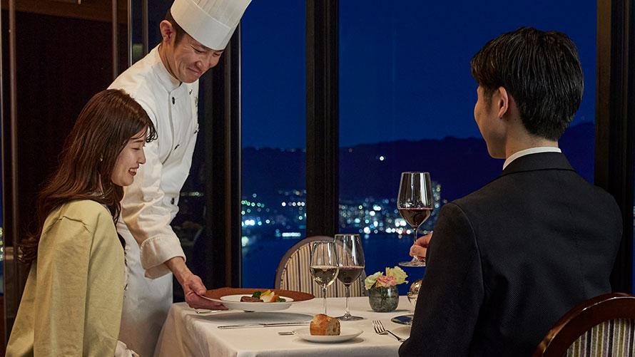 時間とともに移りゆくすばらしい眺望とフランス料理をお楽しみいただけます。