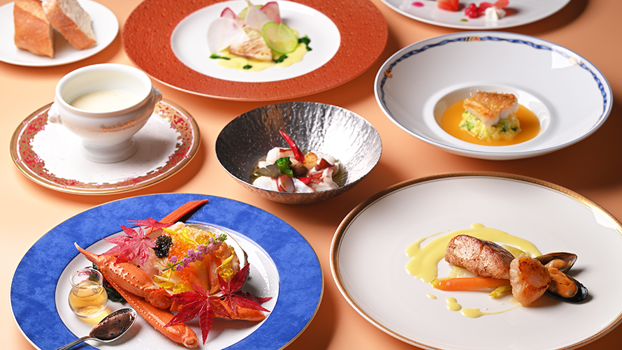 豪快に焼き上げた「オマール海老」、とろける白子をのせた濃厚な「北寄貝と帆立貝のグラタン」や、滑らかな舌触りと蟹の旨味が凝縮したフランス風茶碗蒸し「ロワイヤル」など、冬ならではの温もりあふれる逸品を存分にご堪能ください。