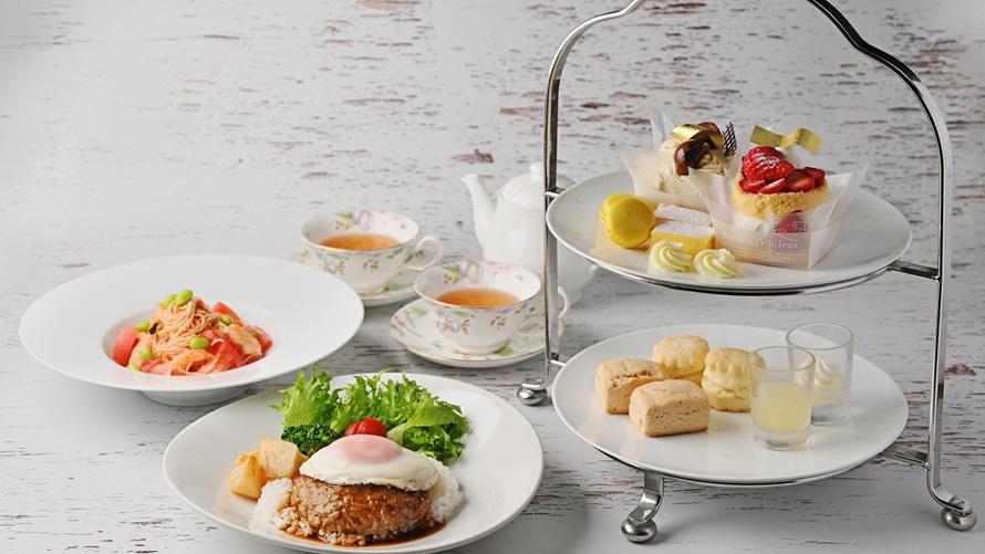 「かぶとベーコンのスープパスタ」または「ミートドリア」からお選びいただけるお食事に、お好みで選べるケーキ、小菓子とスコーンを添えたアフタヌーンティーセットをご用意いたしました。広々とした窓から温かな光が差し込む店内で、大切な方と過ごす冬のご褒美時間をお楽しみください。
