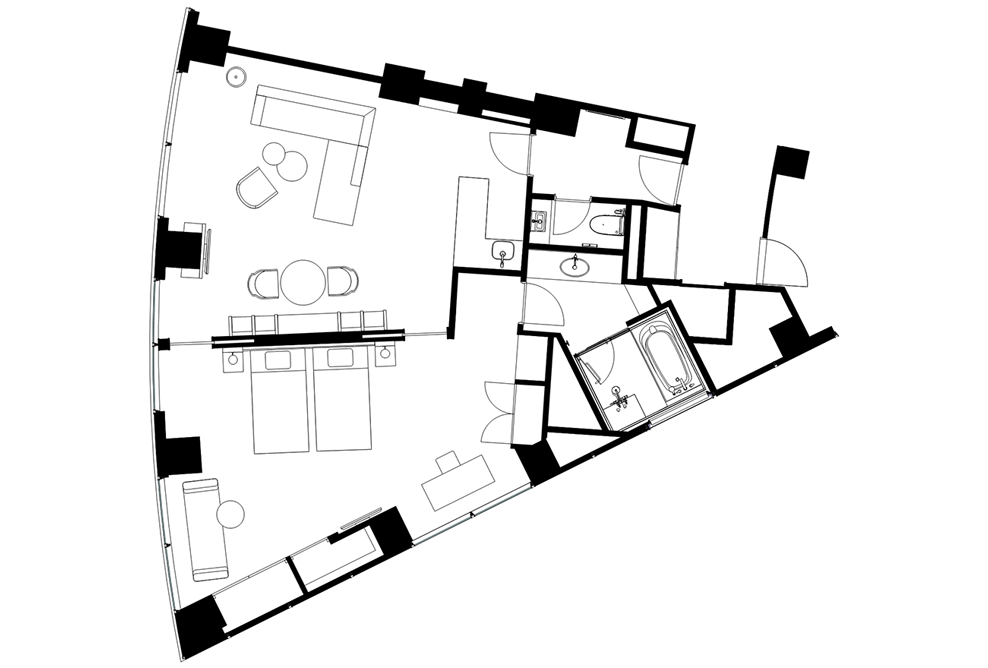 ホテルに一室しかない、広さ95.7㎡のロイヤルスイートルーム。