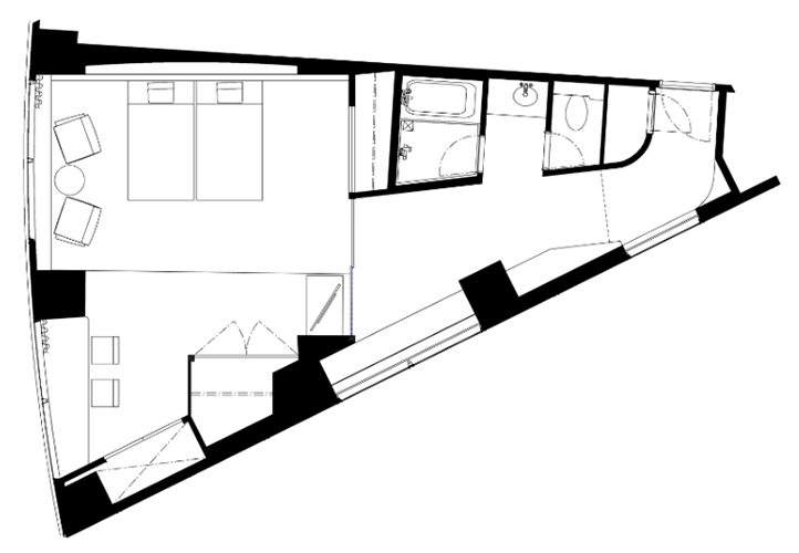 | ベッドサイズ | 幅110cm × 長さ203cm × 高さ55cm(シモンズ製)2台 エキストラベッド:幅97cm × 長さ188cm × 高さ55cm 2台 |