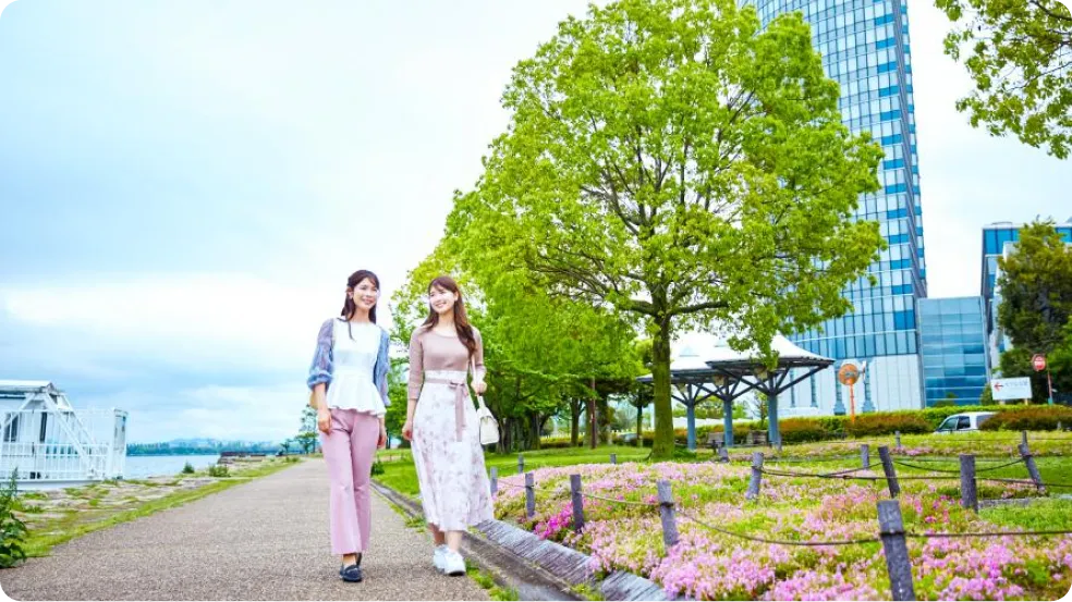 ホテルスタッフおすすめの「びわ散歩マップ」でご朝食前のお散歩へ。休憩にはオリジナルエコボトルで近江のお茶をどうぞ。