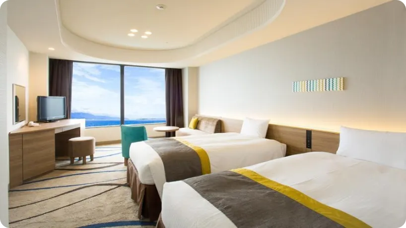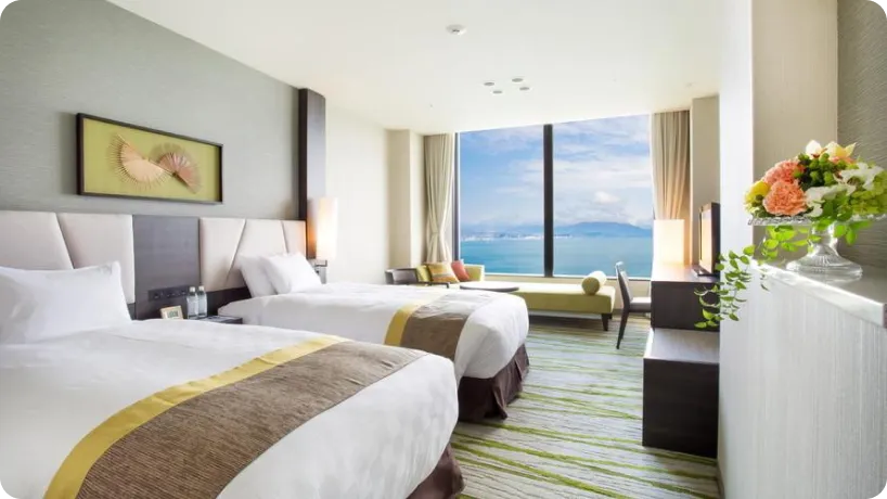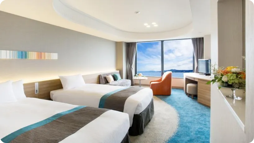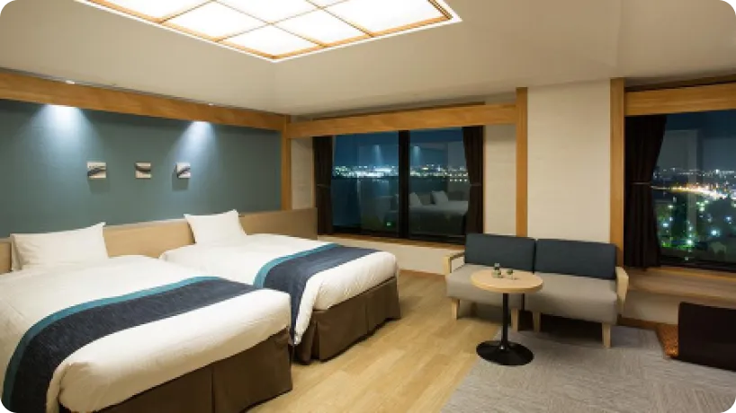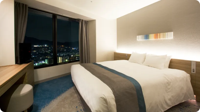 全室レイクビューの癒やしの空間は、夜景、朝日と時間毎に移り変わるびわ湖の眺望をお楽しみいただけます。