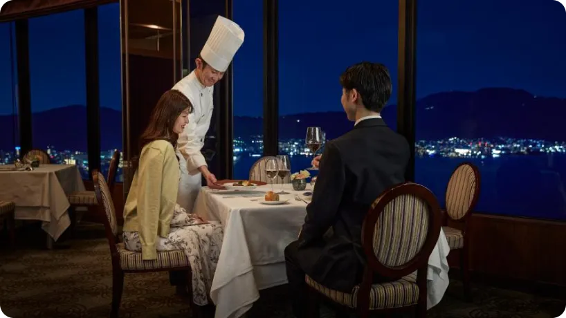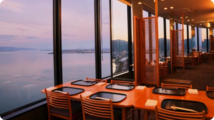 湖岸散策でびわ湖を間近に楽しんだあとは、地上130mの高層階レストランから見渡すレイクビューとともに、滋賀県の発酵食品を取り入れた本プラン限定のモーニングプレートを堪能♪「びわ湖の特等席」ならではの絶景と滋賀の恵みを味わう食体験をお楽しみください。