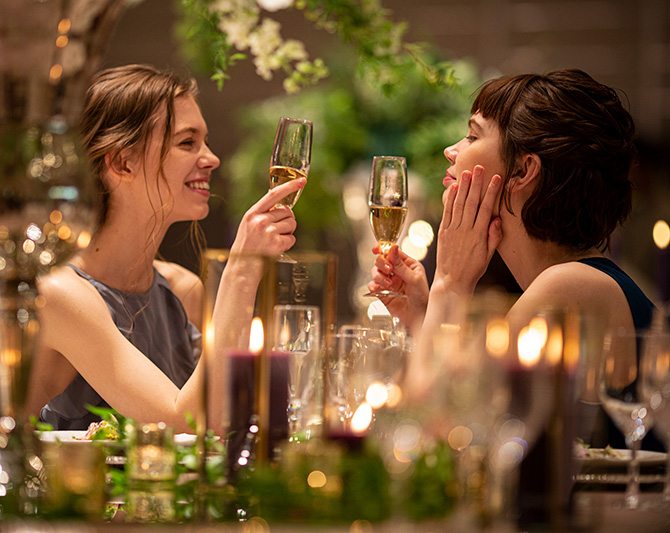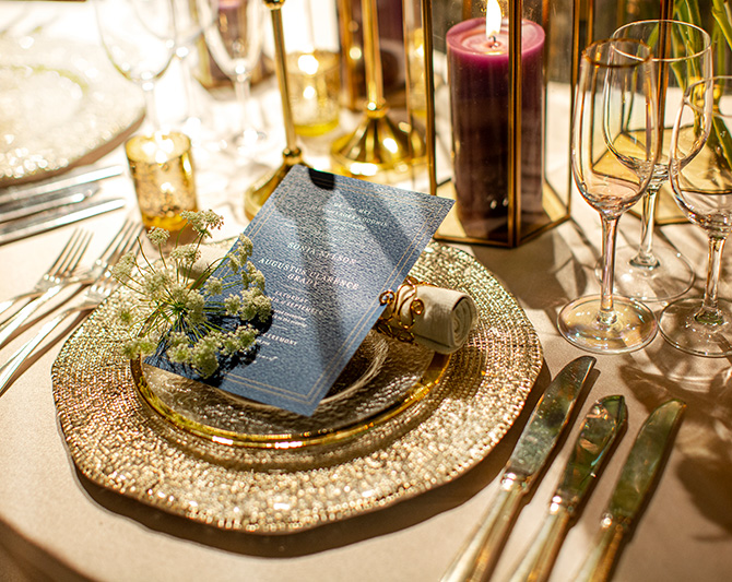 おふたりのメインテーブルはフォトスポットのように印象的な空間を演出。
