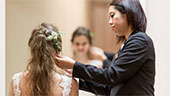 貴女の美しさ 魅力を際立たせるため ヘア&メイクアップアーティストが 幸せの1 日を彩ります 大好きな彼に、そしてお招きしたゲストの皆さまにあなたはどんな印象をもってほしいでしょう。ご希望のイメージやこだわりを叶えることはもちろん、選んだ衣裳や会場の雰囲気に合わせて、おふたりの魅力を最大限に引き出すヘアメイクをご提案し、ビューティーパートナーとして心をこめて美容を担当させていただきます。