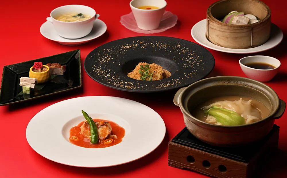 湖国に古くから伝わる伝統野菜「弥平とうがらし」を使った鯛の煮込み料理や滋賀県大津市の田中豆腐店が手作りする豆腐を使った玉子スープなど、地元の味を活かした料理をご用意。寒い冬にぴったりのあつあつフカヒレ土鍋ご飯もお楽しみいただけます。