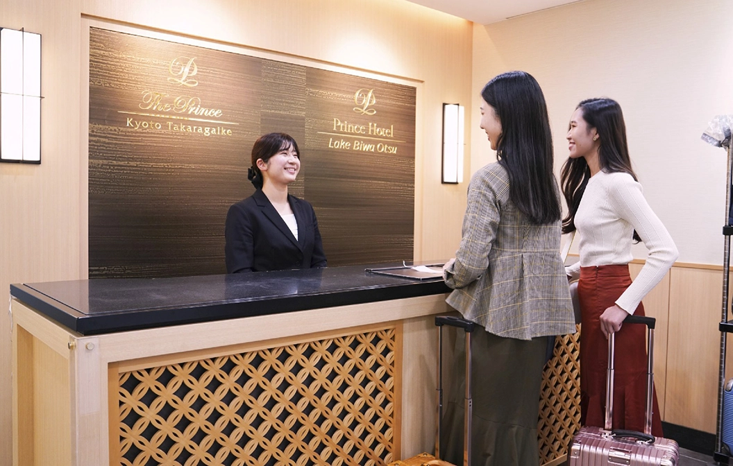 ホテル内のベルキャプテンデスク(1F)にて京都駅の「プリンスホテル ウエルカムカウンター」でお受取りされるお荷物を預けてそのまま手ぶらでご観光にお出かけいただけます。2:00P.M.から6:00P.M.の間に「プリンスホテル ウエルカムカウンター」でお荷物をお受取りください。