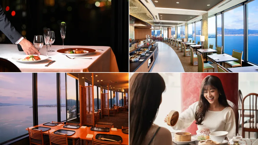 ご利用レストラン:和食 清水(36F)、レイクビューダイニング ビオナ(37F)、フランス料理 ボーセジュール(38F)、中国料理 李芳(1F)