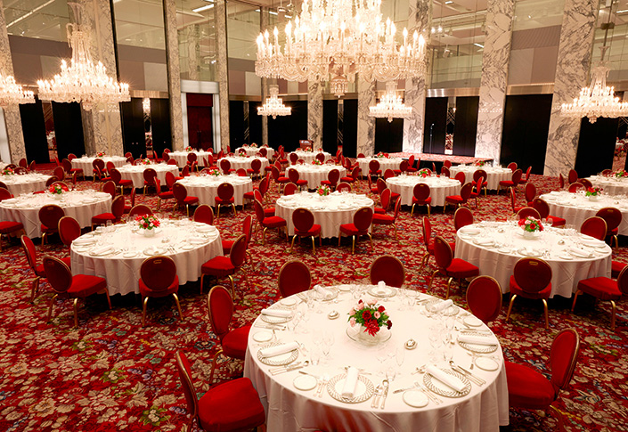 日本最大規模の広さを誇る2室の主宴会場のひとつ「ボールルーム」(B2)。