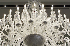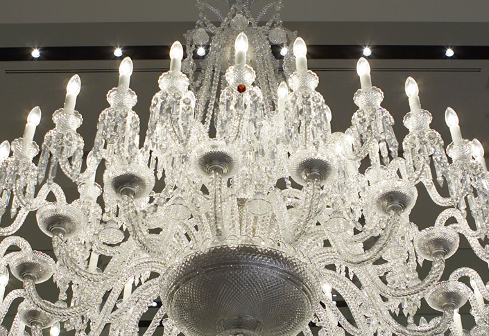 高さ10mの天井から美しい光を放つのは、フランス・バカラ社製のシャンデリア。