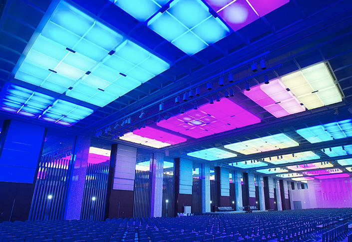 大規模なコンベンションのほか、LEDによる光の演出を駆使したイベントや大容量の光ファイバーによる