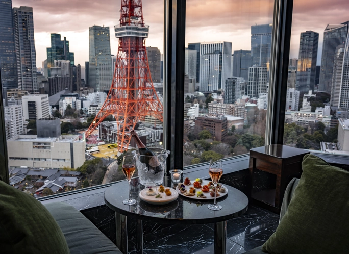 Anniversary PlanBar Time 2名さま ¥39,000東京タワーを間近に臨む窓側席で、ロゼシャンパンとオードブルをお楽しみいただけるプランをご用意いたしました。大切な方と特別なひとときをお過ごしください。