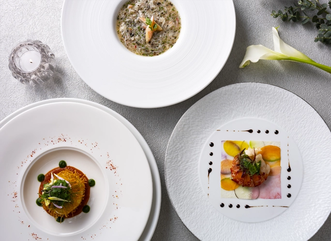Dinner 1名さま ¥23,900レストラン ブリーズヴェール 現料理長 茂手木 了と歴代料理長のシグネチャーをコラボレーションしたディナーコースをお楽しみください。