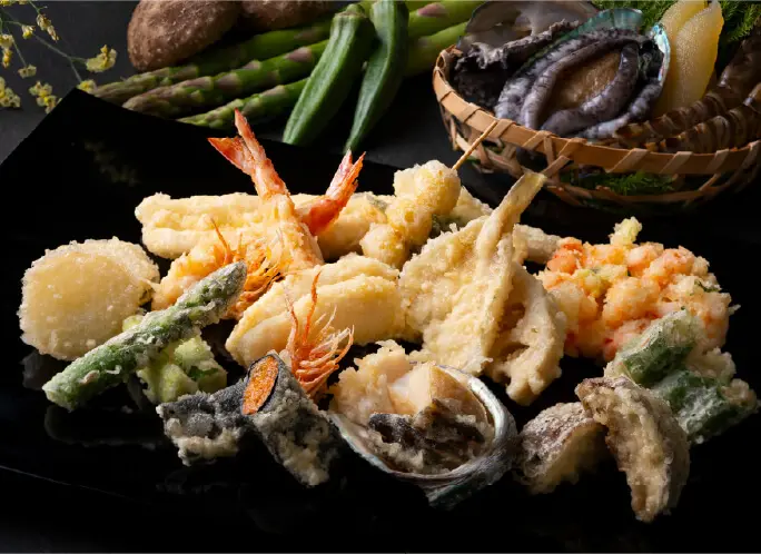 (SEIBU PRINCE CLUB)会員さま ¥13,900天ぷらでは珍しい数の子のほか雲丹の磯辺揚げ、鮑と帆立貝の盛り合わせなど全20品、厳選した魚介や野菜の旨味を薄衣に閉じ込めた天ぷらをご堪能ください。