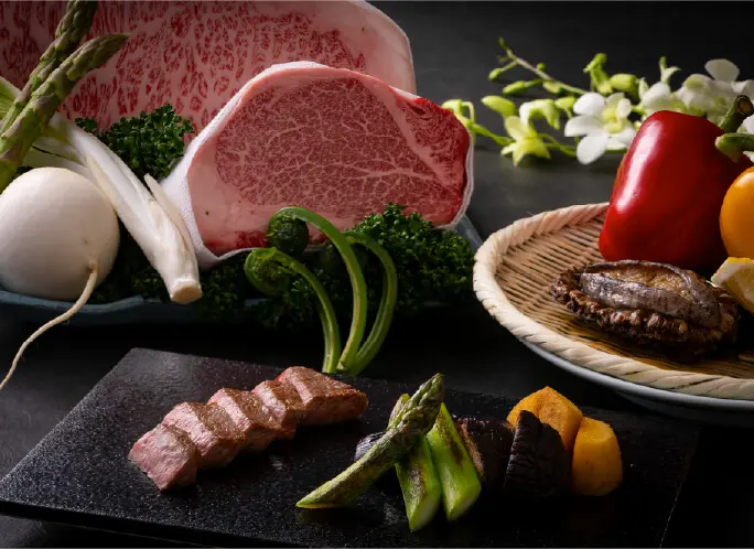 シェフの洗練された技術でお好みの焼き加減で仕上げる、赤身とサシのバランスが良い黒毛和牛をお楽しみください。 -