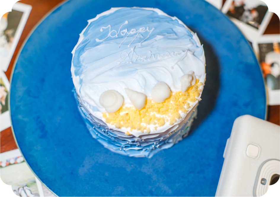 海をイメージしたイベント限定のショートケーキ。