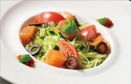 フルーツトマトの冷製パスタ -