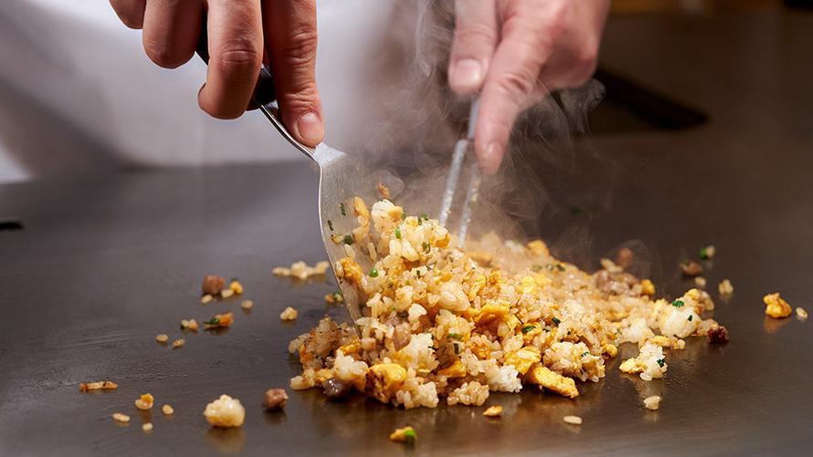 五感で愉しむライヴ感あふれる鉄板焼きは、シェフの鮮やかな技術が光ります。