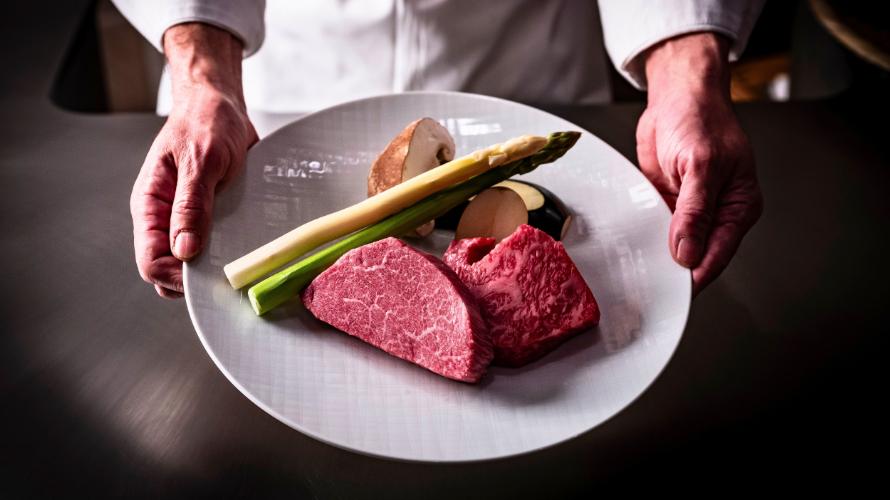 全国各地から選りすぐりの「黒毛和牛」をはじめ、魚介類や野菜をお客さまの目の前の鉄板で調理いたします。目の前で繰り広げられるシェフの巧みな技を存分にお楽しみいただけます。
