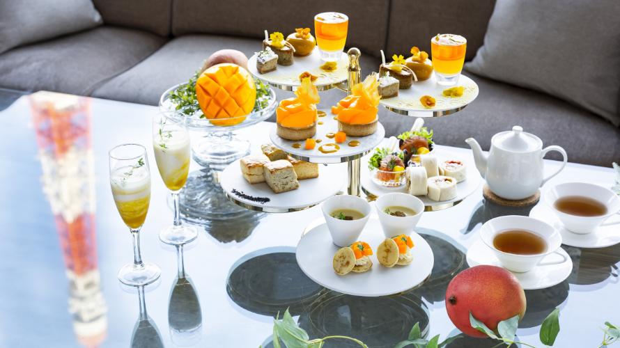 濃厚でとろけるような果肉と奥深い甘さが特徴の「宮崎完熟マンゴー」をスイーツからセイボリーまで贅沢に使用したアフタヌーンティー。「宮崎完熟マンゴー」本来の甘さや、香り高い宮崎県産和紅茶を堪能できるスイーツ、九州産食材を使用したシェフのこだわりが光るセイボリーをご用意。