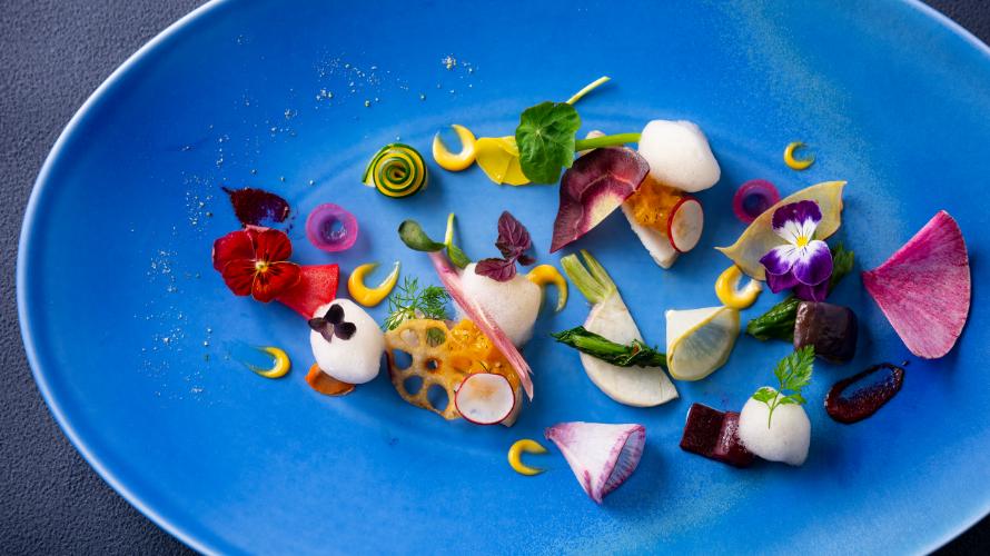 国際コンクール入賞や日本代表出場の経歴を持つ料理長 茂手木によるコース料理、多彩なアラカルトメニューをお楽しみいただけます。