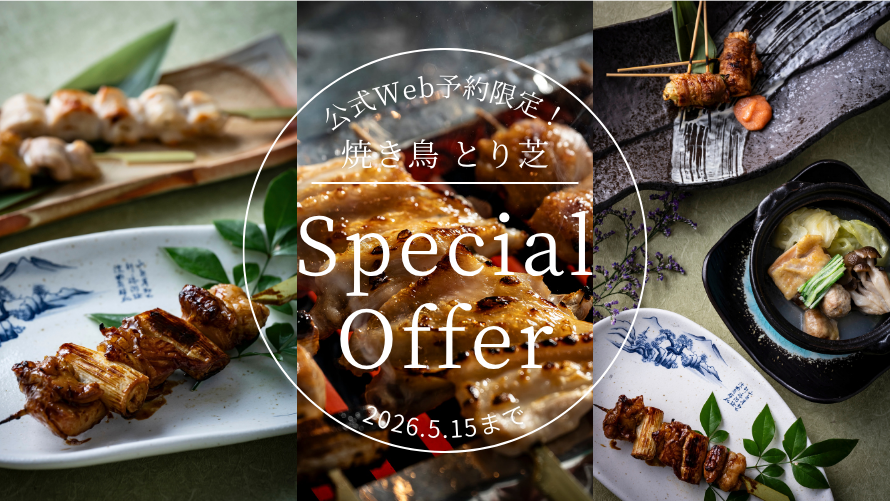 公式Web予約限定Special Offer!九州フェア2026限定の「繁桝 赤しそ梅酒」または「東鶴 純米吟醸生酒」を1杯プレゼントいたします。厳選した素材の旨味を活かした揚げたての軽やかな天ぷらをお楽しみください。