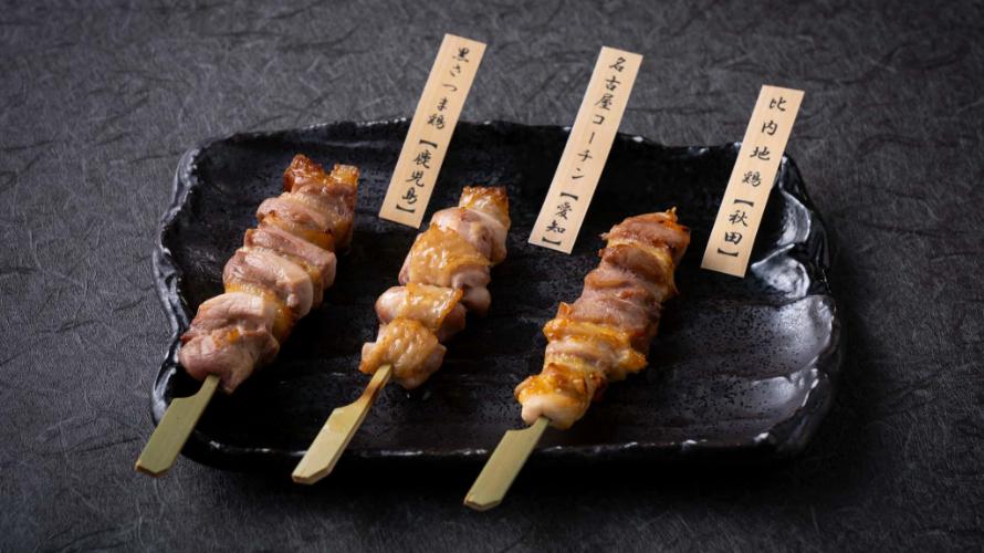 弾力が強くコク深い味わいの“名古屋コーチン”、旨味と甘みが特徴の“比内地鶏”、締まった肉質とジューシーな“黒さつま鶏”の3種の地鶏をお楽しみいただけます。