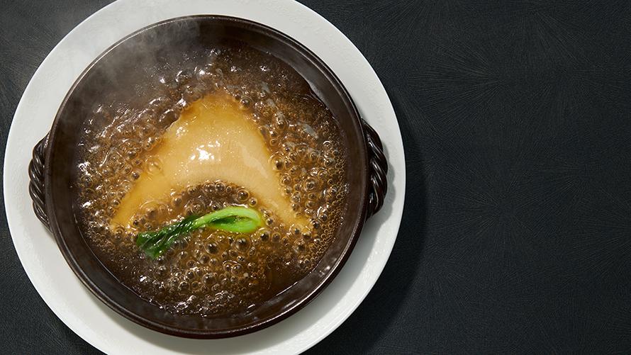 「フカヒレの姿煮 陶板仕立て」