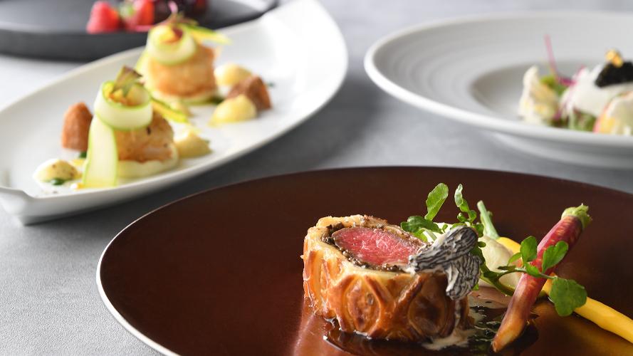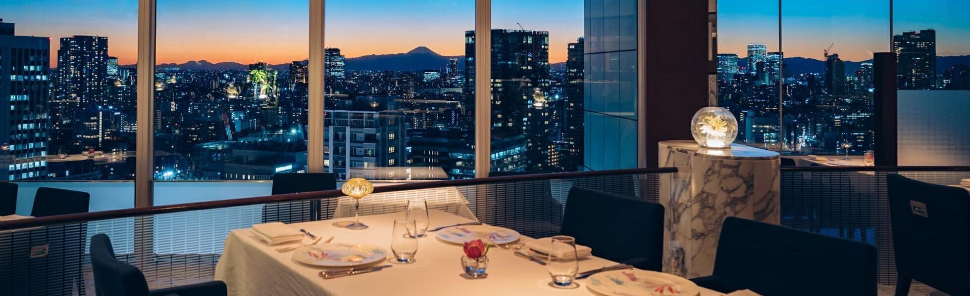 ホテル最上階に位置する全席セミプライベートルームエリア。数々の国際コンクールで入賞を経験を持つ料理長 茂手木 了による渾身のコース料理や、ソムリエ厳選の種類豊富なワインをご用意。自分たちだけの特別な空間でラグジュアリーなひとときを。