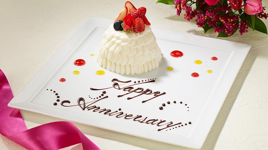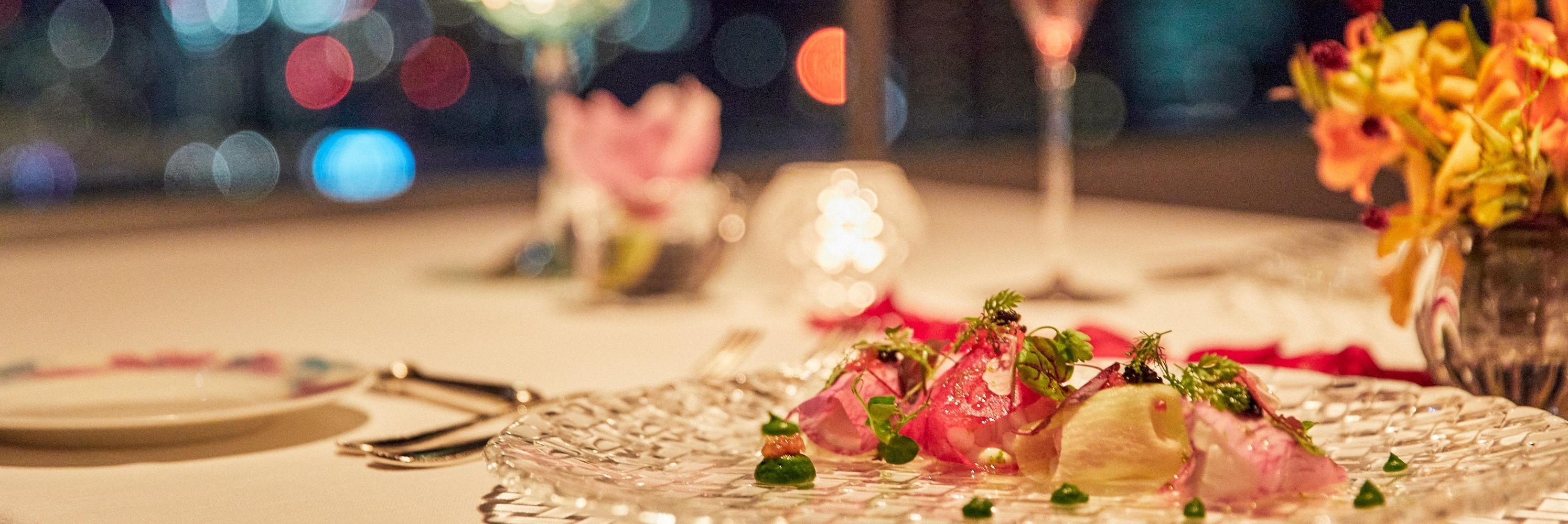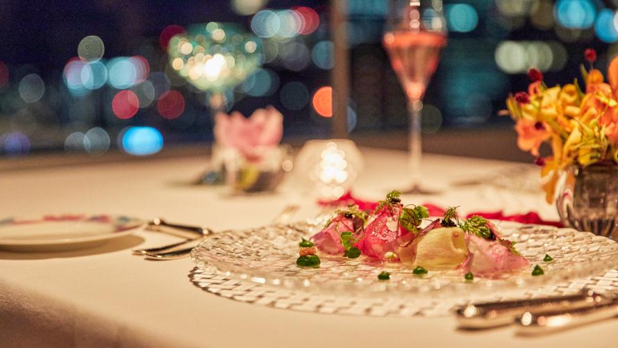 ご結婚5周年ごとにご利用いただけるアニバーサリーメニュー。ホテル最上階からの美しい夜景とともにシェフが心を込めて作った心躍るコースディナーと上質なシャンパンをお楽しみください。お持ち帰りいただけるテーブルのフラワーアレンジメントが、おふたりの記念日をより一層華やかに演出いたします。