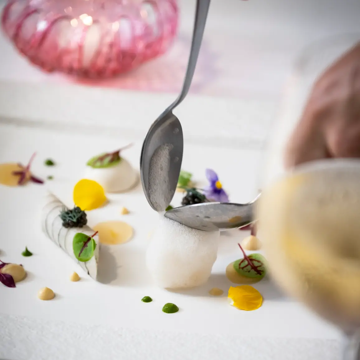 a New ChallengeThe dishes presented by Chef Motegi have evolved, inspired by the joy he envisions on guests' faces, while still building on the long-standing traditions at Restaurant Brise Verte. Indulge in a premium experience shaped by the exquisite harmony between meticulously-crafted, vibrant cuisine and wines chosen with care by our sommelier.