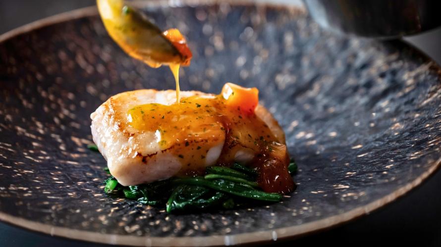 選りすぐりの黒毛和牛や、生簀から取り出した魚介をシェフの巧みな技で愉しむ鉄板焼き専門店。夕暮れ時のように薄暗さのある店内と、やさしく灯るキャンドルが大人の雰囲気を醸し出します。お客さまの目の前で繰り広げられる鉄板捌きは、ライヴ感に溢れ、料理が完成していくのを待つ時間も心躍るひととき。目で見て、音を聞いて、香りを感じて、堪能する食感と味わい。五感で愉しむお食事は鉄板焼きの醍醐味そのもの。洗練された空間で贅沢な鉄板焼きをお楽しみください。
