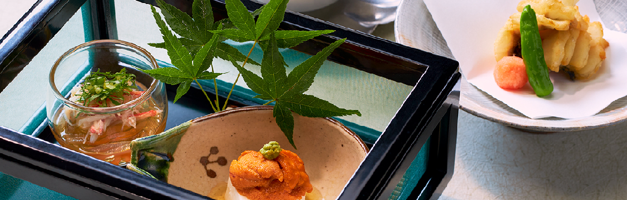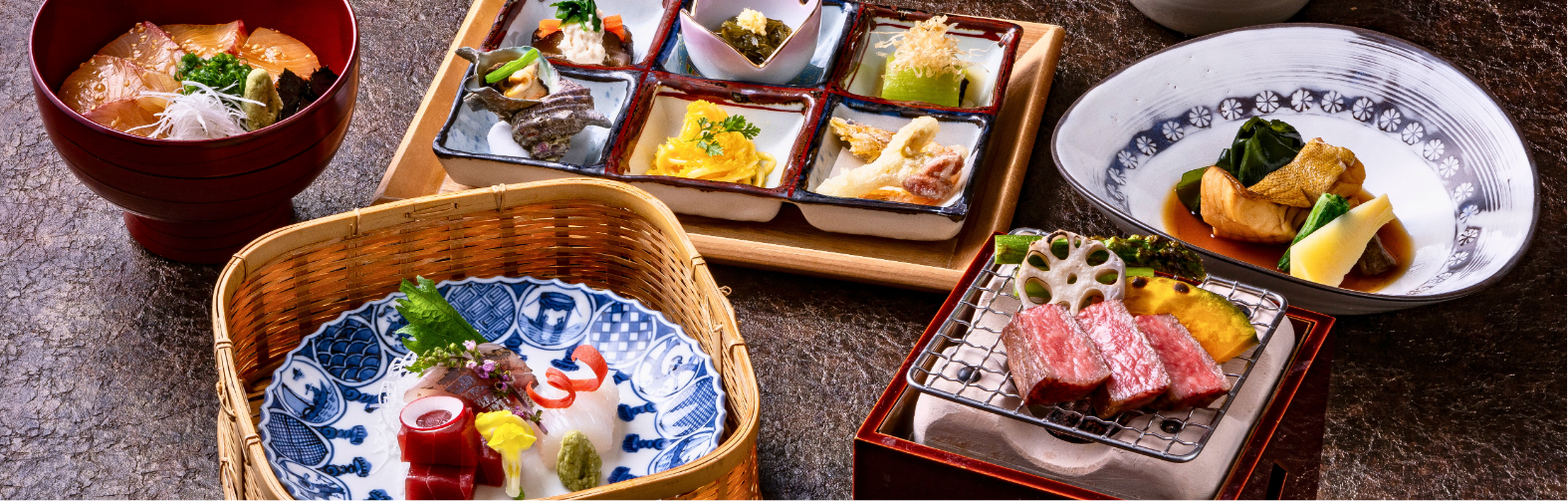 磨き抜かれた技と四季折々の厳選素材が織りなす、日本の伝統を受け継ぐ懐石料理をご堪能いただけます。気軽に楽しめるテーブル席から、格式ある個室、特別な日にふさわしい大広間まで、多彩なお席をご用意。ご接待やご会食、お祝いの席など、シーンに合わせて上質なひとときをお届けいたします。
