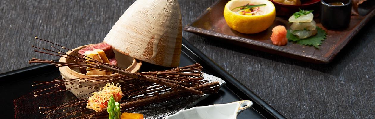 “和”の伝統が息づくゆったりとした時間が流れる日本料理店。春には淡くかわいらしい桜、夏には緑鮮やかなドウダンツツジなど季節ごとに変わる入口装飾でお出迎え。店内水路に流れる川のせせらぎが落ち着いた空間を演出。お祝い事やご接待など大切な日を彩るおもてなしをご提供いたします。日本の伝統を保ち、四季を表現した繊細な味わいの料理の数々。盛り付ける器にもこだわりが光る。目で見て、舌で味わう日本料理をお楽しみください。