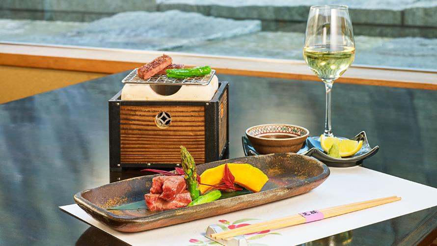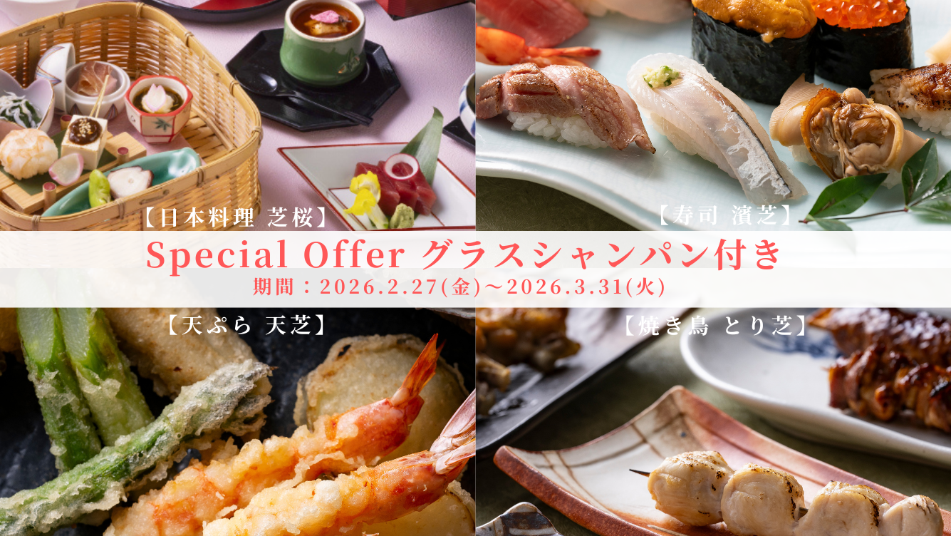 和食を代表する「天ぷら」「和牛」「寿司またはうなぎ丼」の三味を懐石料理でご用意。和牛は香ばしい“和牛網焼き”または、柔らかな和牛ロースを生卵を絡めて味わう"和牛すき煮”のどちらかを、御食事は寿司 濱芝の板前が握る“にぎり寿司”または、旨味を閉じ込めたふっくらとした身の“うなぎ丼”をお選びいただけます。お好みの懐石料理をチョイスしたい方や、海外のお客さまを招いてのご会食などにもおすすめです。