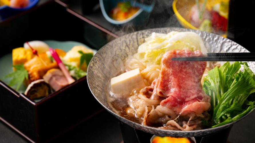 クリスマス期間限定!お好みのお食事内容をチョイスして、自分だけの懐石料理を楽しめる三味懐石が、Web予約限定で乾杯グラスシャンパン付きにてお得にお楽しみいただけます。肉料理は「和牛網焼き」または「和牛すき煮鍋」、御食事は「握り寿司四貫」または「うなぎ丼」をお選びいただけます。日本料理ならではのクリスマスをしっとりと趣深くお楽しみください。