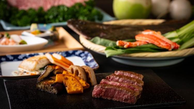 「国産 平目とズワイ蟹 黒毛和牛を味わう季節の鉄板焼きコース」
