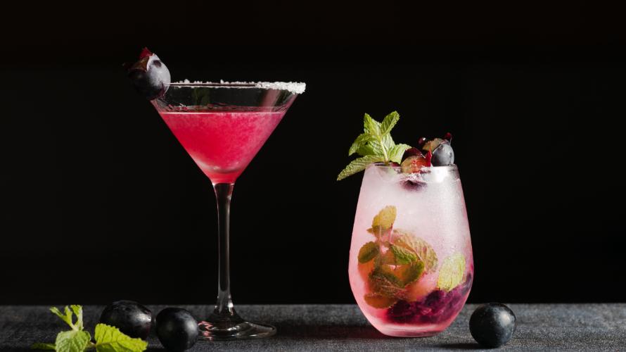 2026年芝大神宮発表の強運カラーをイメージしたカクテル。女性の強運カラー「藤色」を表現したカクテルと、男性の強運カラー「群青」を表現したカクテル2種をご用意。新年の飛躍の願いを込めた一杯を楽しんでみてはいかがでしょうか。