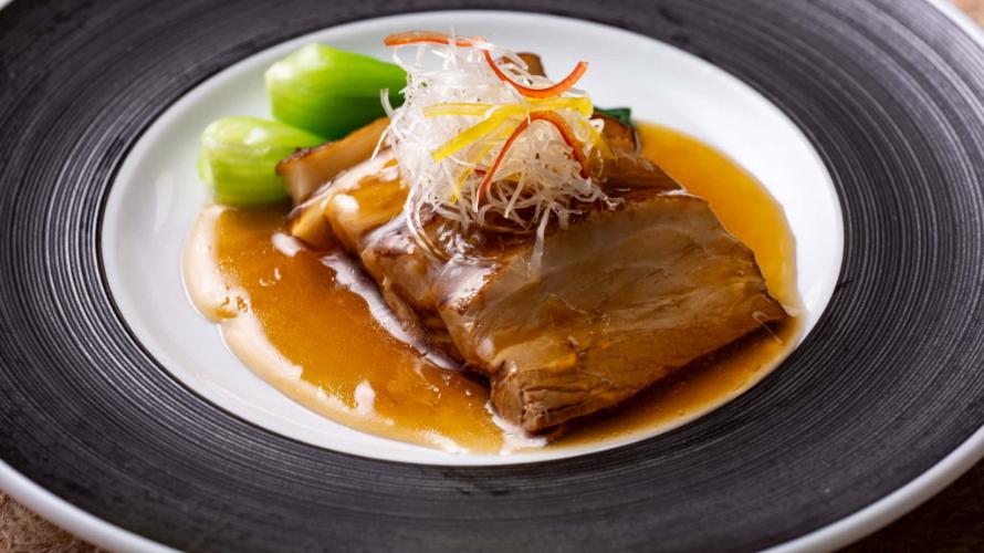 広東料理ならではの焼きもの前菜としてお客様にも好評です。パンチの効いた塩味と五香粉の香りが食欲をそそる一品。