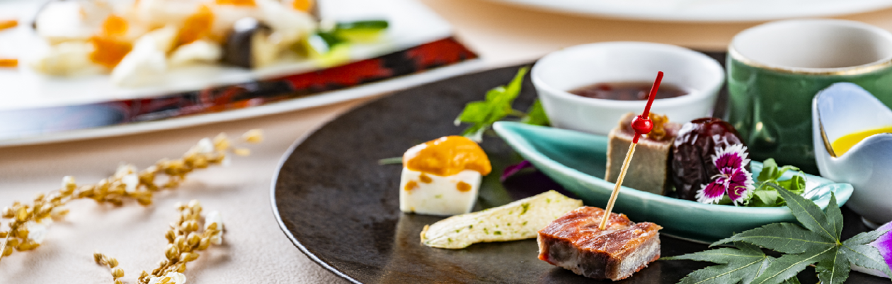 本格点心や麺類に加え、選び抜かれた食材で仕立てるコースもご用意。スタイリッシュな個室や貸切対応可能な広々とした空間は、ステージ・照明設備も完備し、懇親会や会食など特別な集いにもふさわしいひとときを演出します。