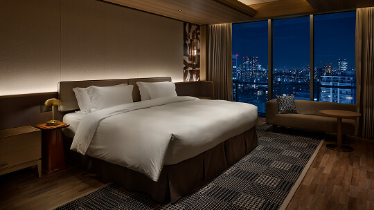 広々とした窓から、きらめく夜景や活気に満ちた朝など、多彩な東京の景色をお楽しみいただけます。