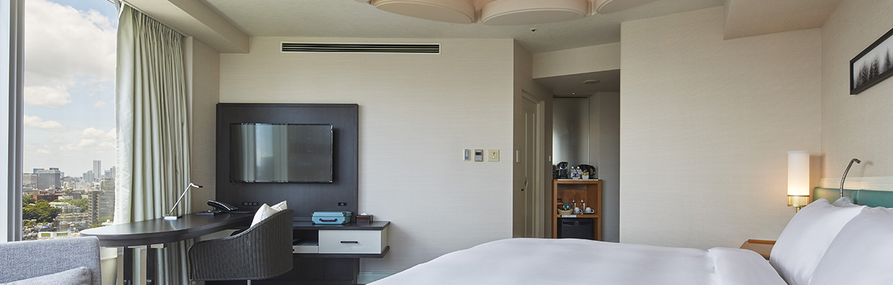 東京の景色を眺めながらくつろげるキングベッドを備えた37.2㎡のお部屋。