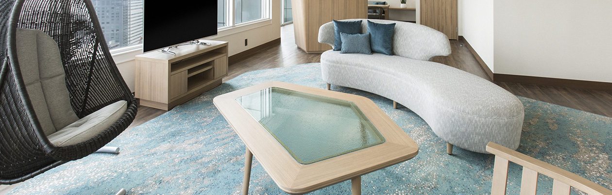 公園のなかにいるような開放感を感じながらくつろげる、113㎡のスイートルーム。