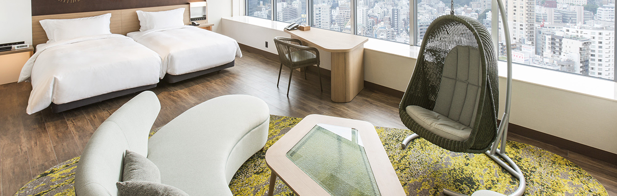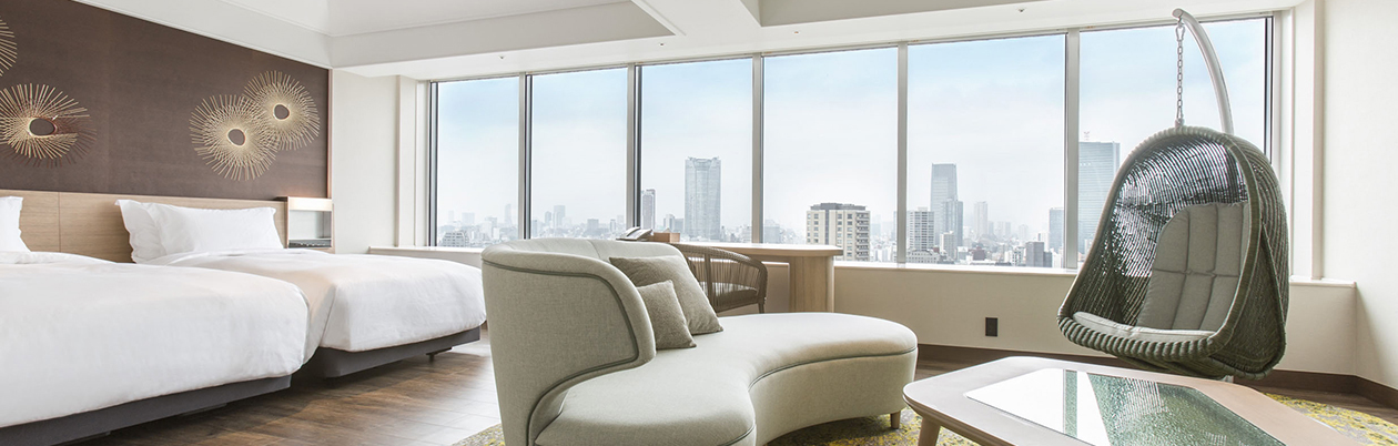 プレミアムクラブラウンジやスパ&フィットネスなどをご利用いただけるツインベッドを備えた50㎡のジュニアスイートルーム。