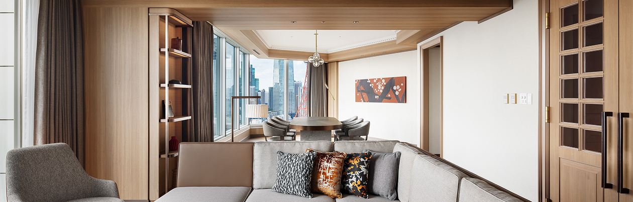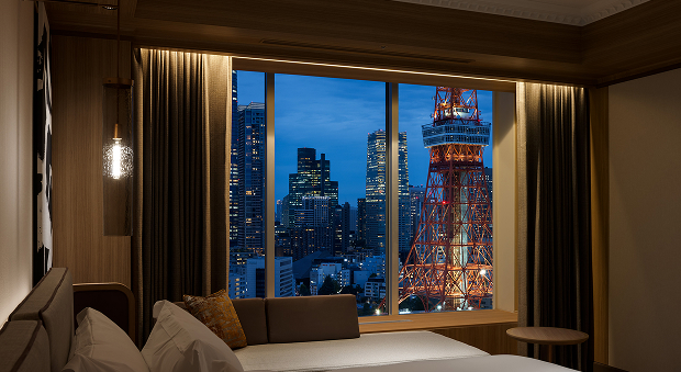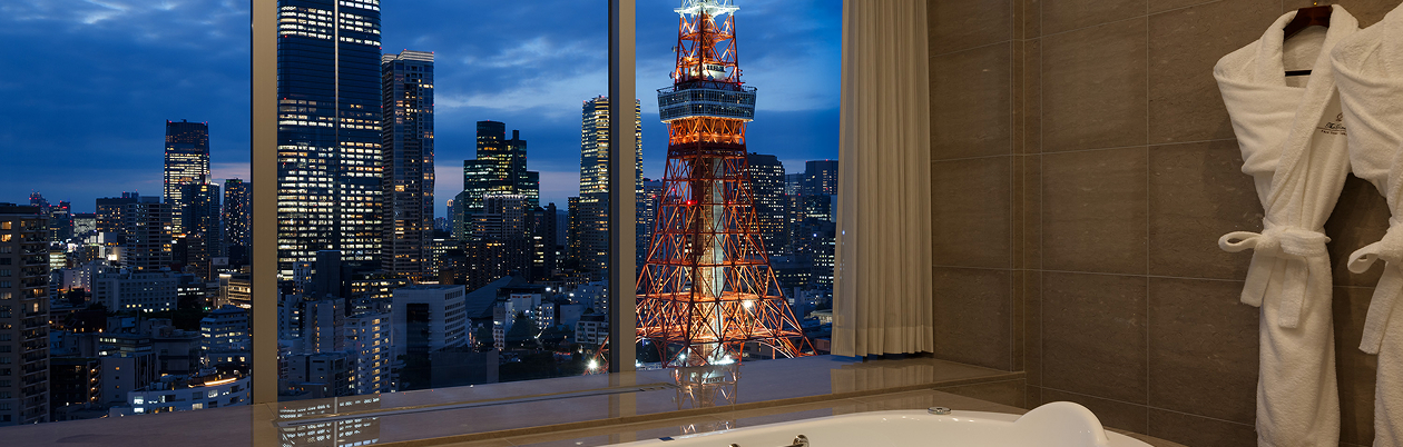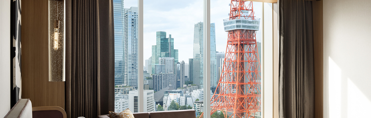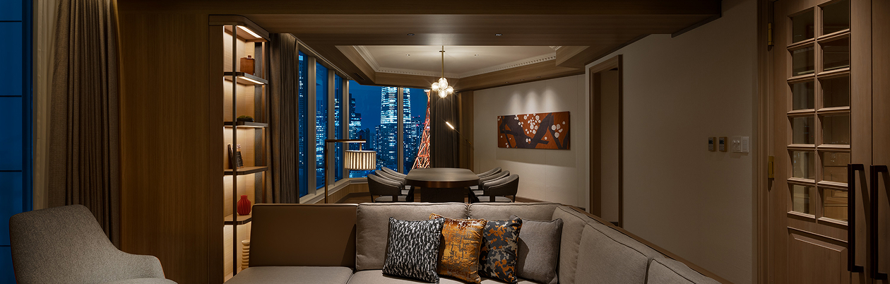 リビング、ベッドルーム、バスルームのいずれの空間からも東京タワーの絶景を間近に臨む、「THE TOKYO」を感じられる贅沢なスイートルーム。