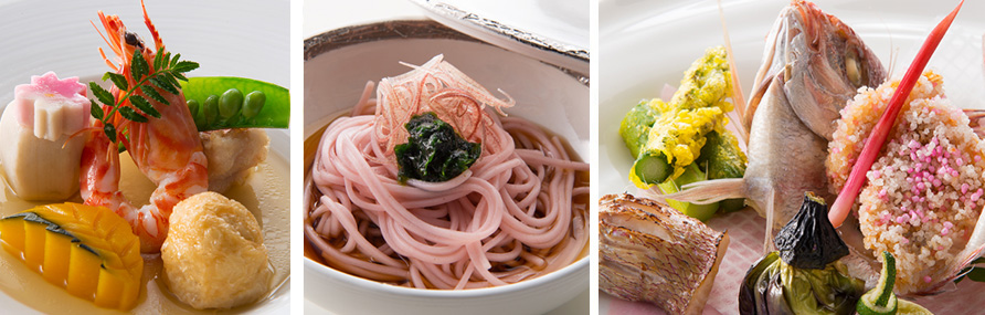 日本料理の伝統と技が息づく、珠玉の祝膳。 海の幸と大地の恵みをふんだんに取り入れた繊細で雅やかなお料理が織りなす、美味なひととき。