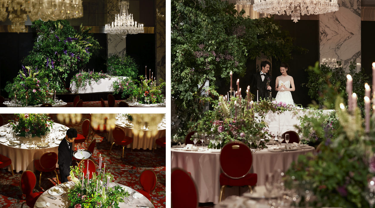 その空間を、おふたりのテーマで飾ったとき、ゲストと歓びを分かちあう至福のひとときが生まれます。(60〜1,000名さま)